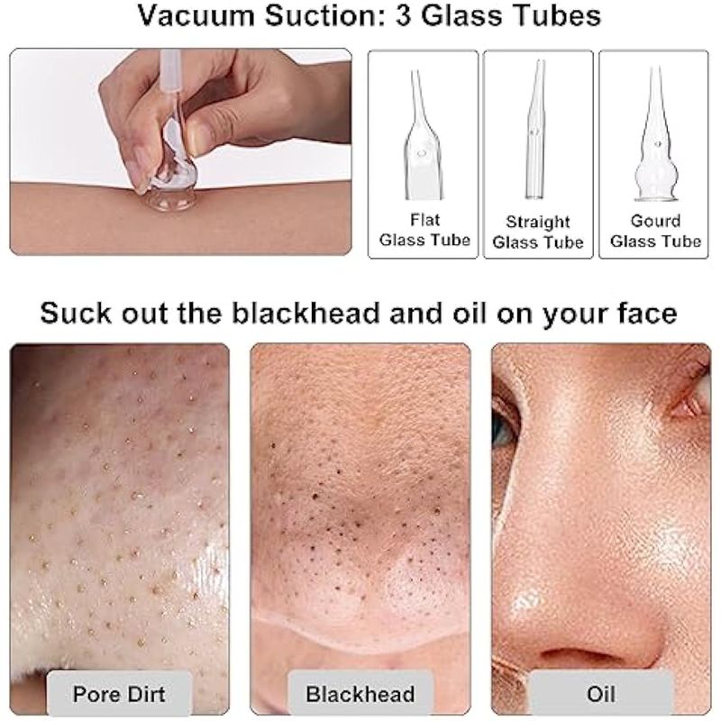 ?????Función 2: terapia de succión al vacío tubos de vidrio? Elimina los puntos negros y absorbe la grasa y la suciedad de tu cara, aumenta la circulación sanguínea en la piel