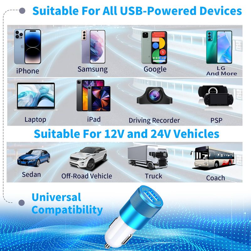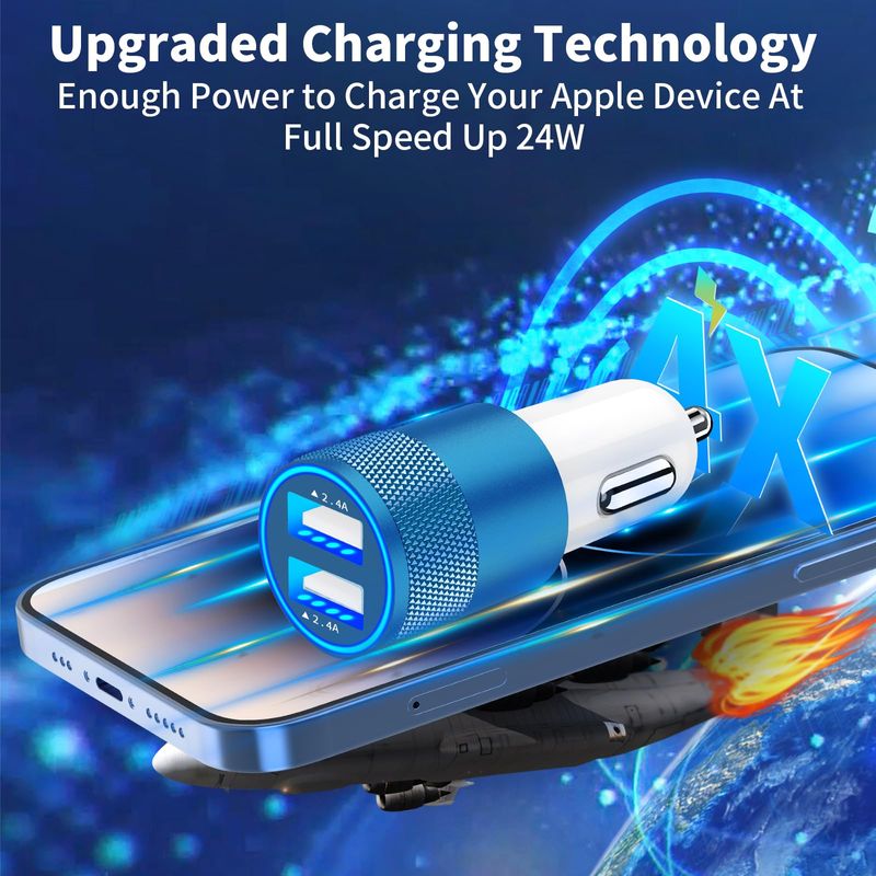 1. Charging two devices simultaneously with this incredibly powerful 24W dual USB car fast charger to match your iPhone device's need.