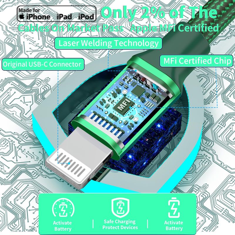 1. Built in High-Tech Chipset and Protection Resistor, Protect your iPhone devices against short circuiting, over-heating, over-currents, and over-charging.