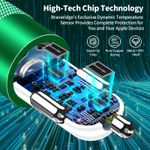 ?Advanced Safety Features?: Certified by MFi, UL, ETL, FCC, CE, ROHS. Equipped with Braveridge's all-new Intelligent temperature control system to provide over-current, over-voltage, over-heating, and short-circuit protection, Automatically detects and delivers the optimal charging output for your iPhone, ensuring safe charge. Features a Dynamic Temperature Sensor which actively monitors temperature, and a Power Tuner Chip which adjusts power output to safeguard your connected iPhone device.
