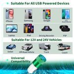 ?Premium Materials and Design?: The housing made of an aluminum alloy + ABS fireproof materials offers better scratch resistance, heat dissipation, attractive design, and long service life, suitable for the most untouched vehicle interiors. Gold-plated tubing reduces heat during charging while maximizing charging speed and efficiency. The ring LED indicator can help you to find the charging ports easily in the dark, Easily fits in a car cigarette Lighter socket with limited space.