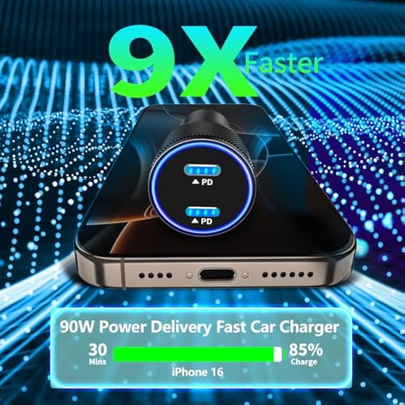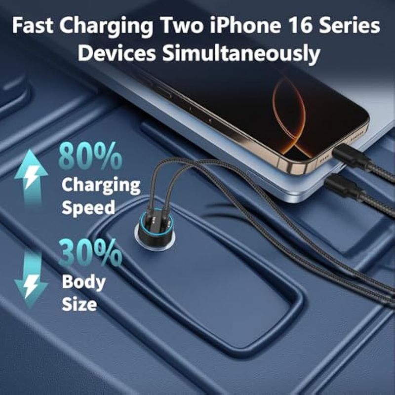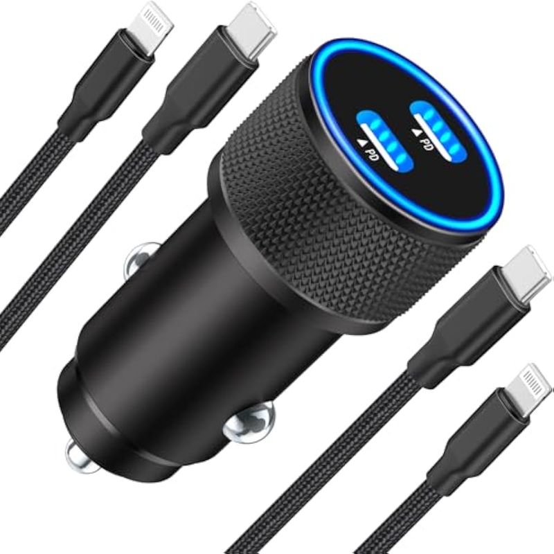 [Apple MFi Certified] iPhone Fast Car Charger, Linocell 60W Dual USB C Power Delivery All Metal