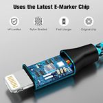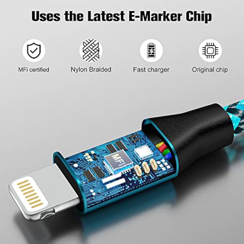 ?Certificación MFi de Apple?El colorido cable USB pasa la estricta prueba de Apple, carga más segura. El chip certificado oficial de Apple es compatible con todas las versiones de iOS, garantiza que no hay mensajes de advertencia emergentes, cuenta con carga rápida, protección contra sobrecarga, protección de batería y transferencia de datos segura y rápida.
