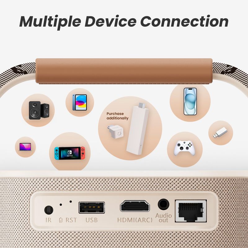 [Sonido por JBL y batería integrada] Proyector Yaber T2 para exteriores con WiFi 6 y Bluetooth,