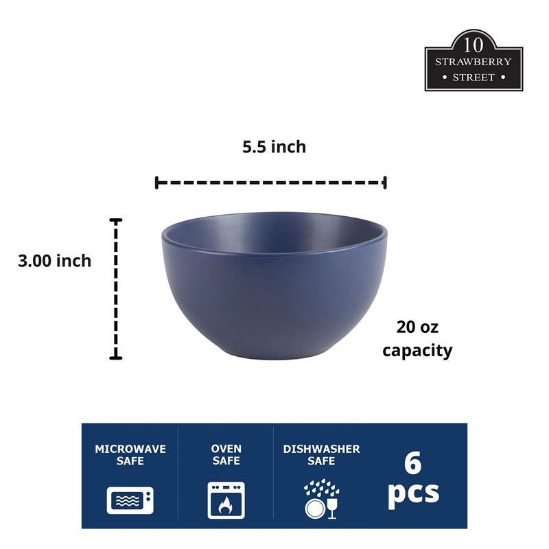 10 Strawberry Street Wazee - Juego de 6 cuencos para cereales mate de 5.5 pulgadas/16 onzas, gris