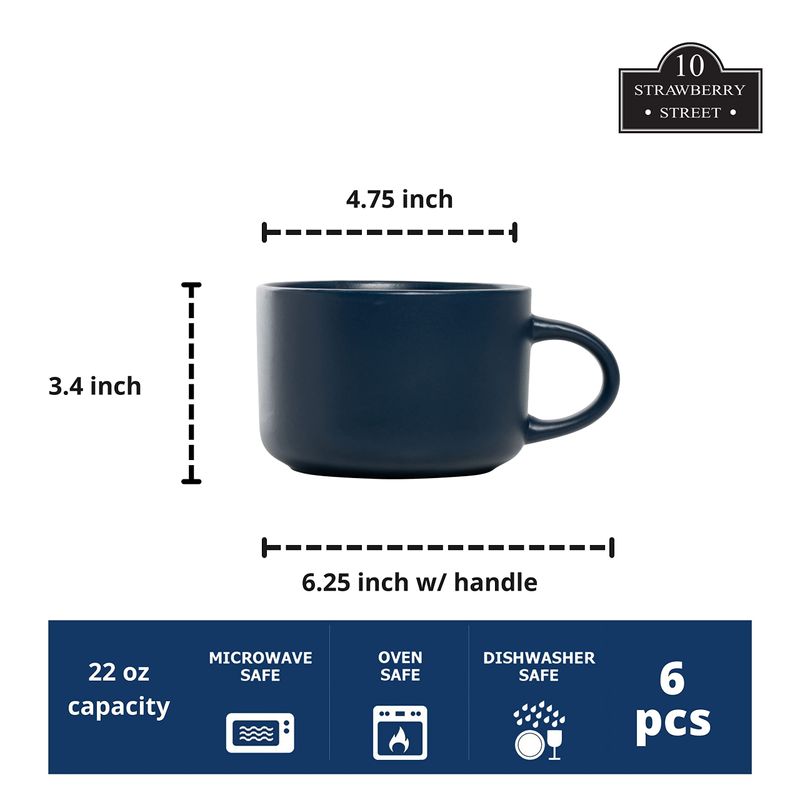 10 Strawberry Street Wazee - Juego de 6 cuencos para cereales mate de 5.5 pulgadas/16 onzas, gris