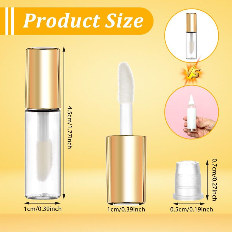 10 tubos vacíos de brillo de labios de 0.04 onzas líquidas, contenedores de lápiz labial dorado,