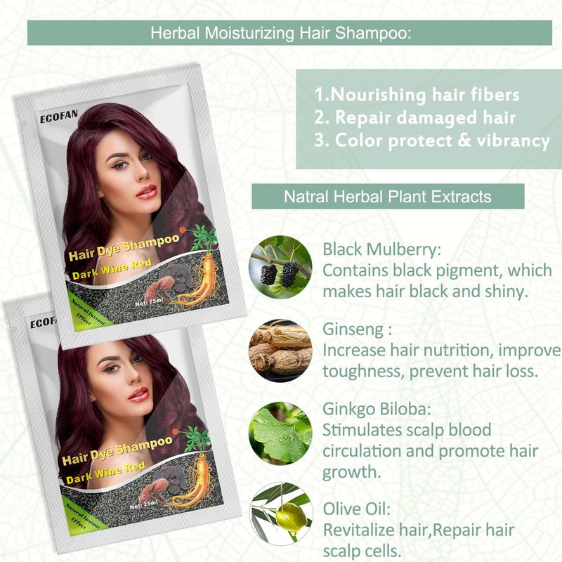 BELLEZA Y SALUDBELLEZA Y CUIDADO CORPORALCUIDADO CAPILAR10 unidades de champú 3 en 1 de tinte para el cabello rojo vino oscuro, tinte para el cabello