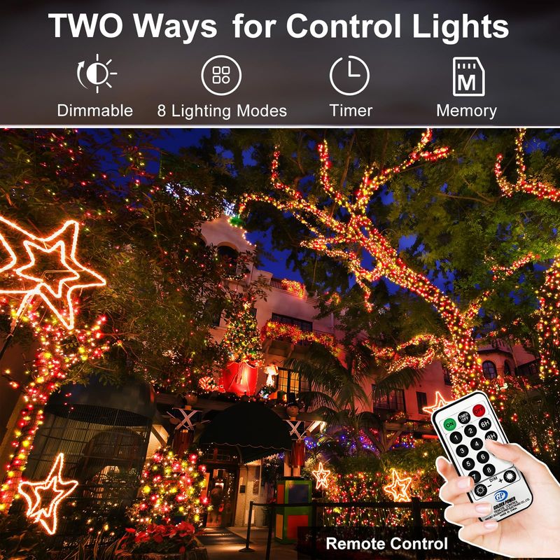 1000 luces LED de Navidad de 403 pies que cambian de color al aire libre con control remoto, 11
