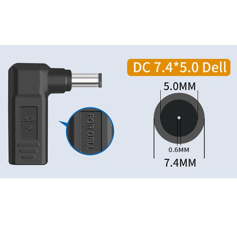 100W DC Adapter to Female USBC 7.4 X 5.0mm, 7.4x5.0mm to USB C 19.5V Adapter Made for Dell Inspiron