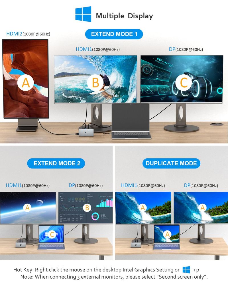 12 EN 1 USB-C HUB TRIPLE DISPLAYS, MODO ESPEJO, HDMI, ESTACIóN DE ACOPLAMIENTO PARA WINDOWS/MAC, 100W PD, LECTOR DE TARJETAS SD/TF, PUERTOS USB 3.0
