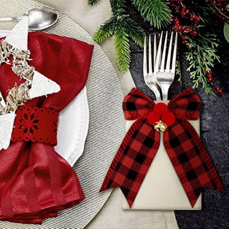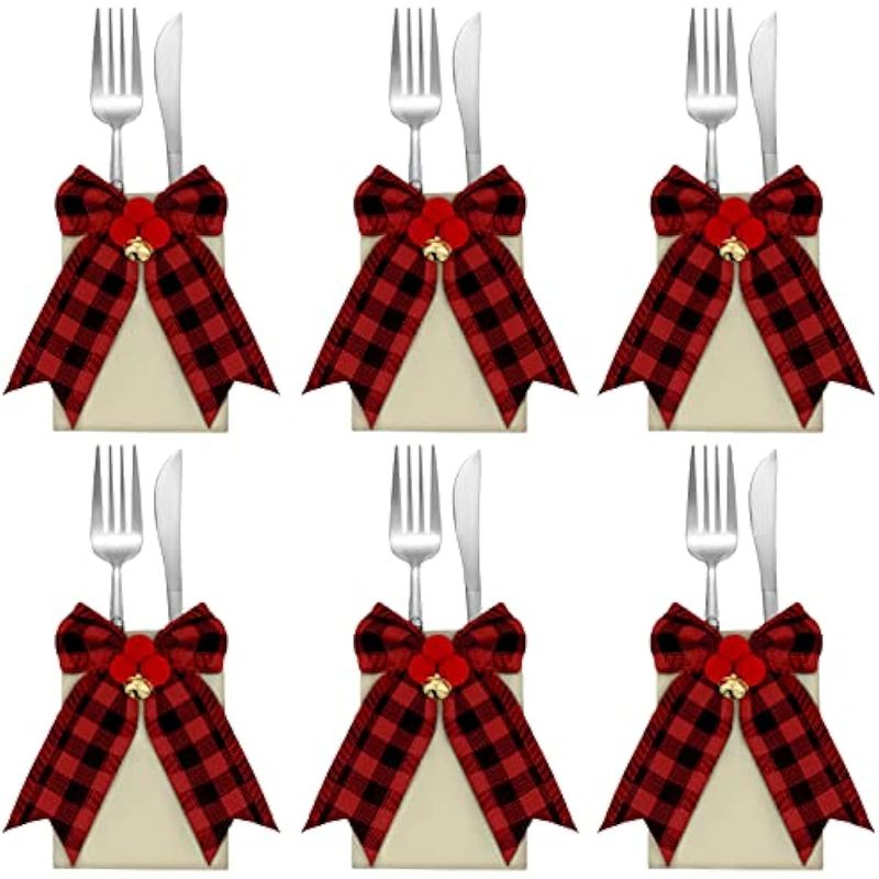 HOGARBAZARUTENSILIOS DE COCINA12 piezas de cubiertos de Navidad, soporte de arpillera para utensilios de Navidad, soporte de