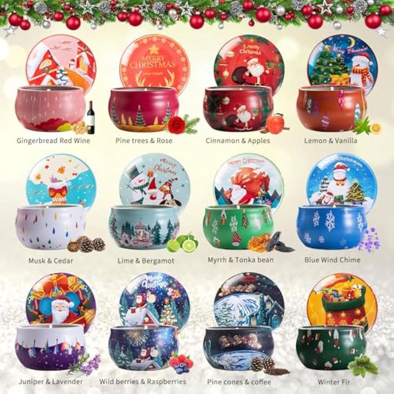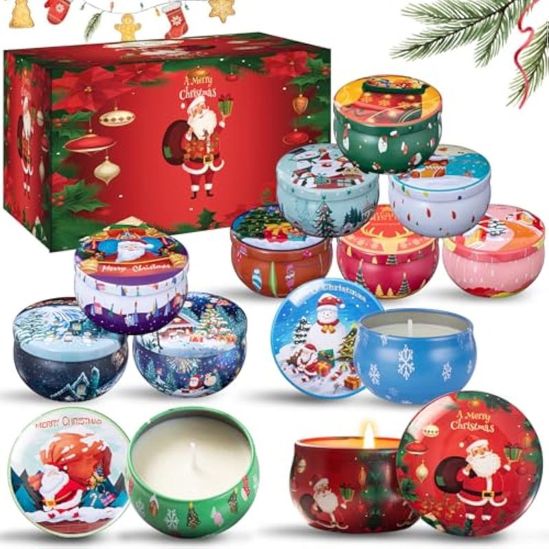HOGARBAZARDECORACION12 velas perfumadas de Navidad para mujeres, velas de cera de soja con aceites esenciales, velas de