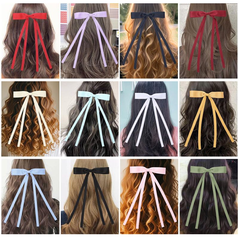 16 lazos para el pelo para mujer, lazos para el pelo con cola larga, pinzas para el cabello,