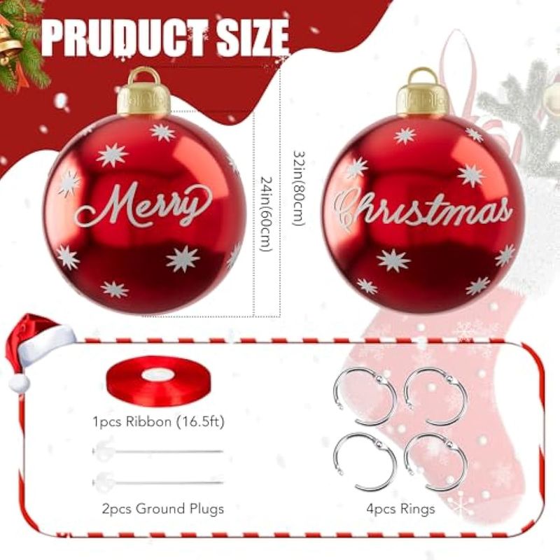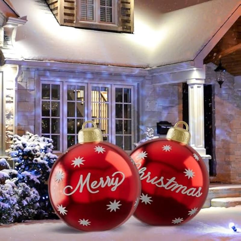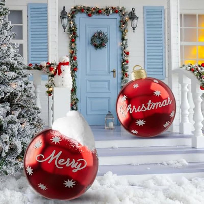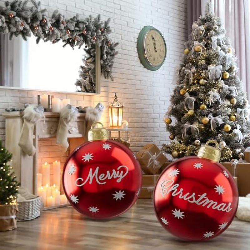 HOGARBAZARDECORACION2 bolas inflables de PVC de Navidad para exteriores, bolas gigantes de 24 pulgadas para adornos de