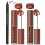 2 colores nutritivos brillo labial marrón delineador combinado, juego de aceite de hidratación para
