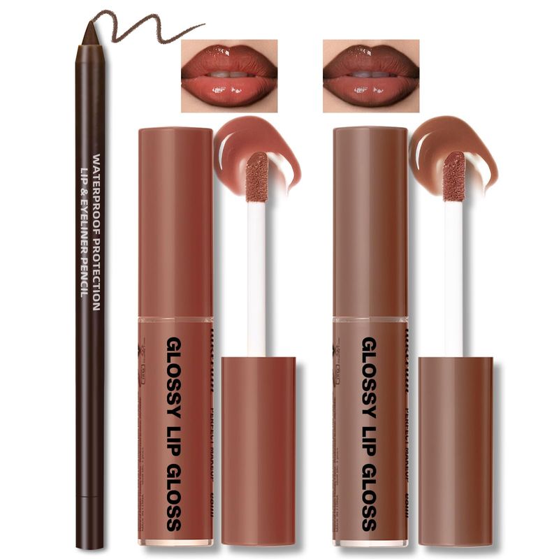 BELLEZA Y SALUDBELLEZA Y CUIDADO CORPORALMAQUILLAJE2 colores nutritivos brillo labial marrón delineador combinado, juego de aceite de hidratación para
