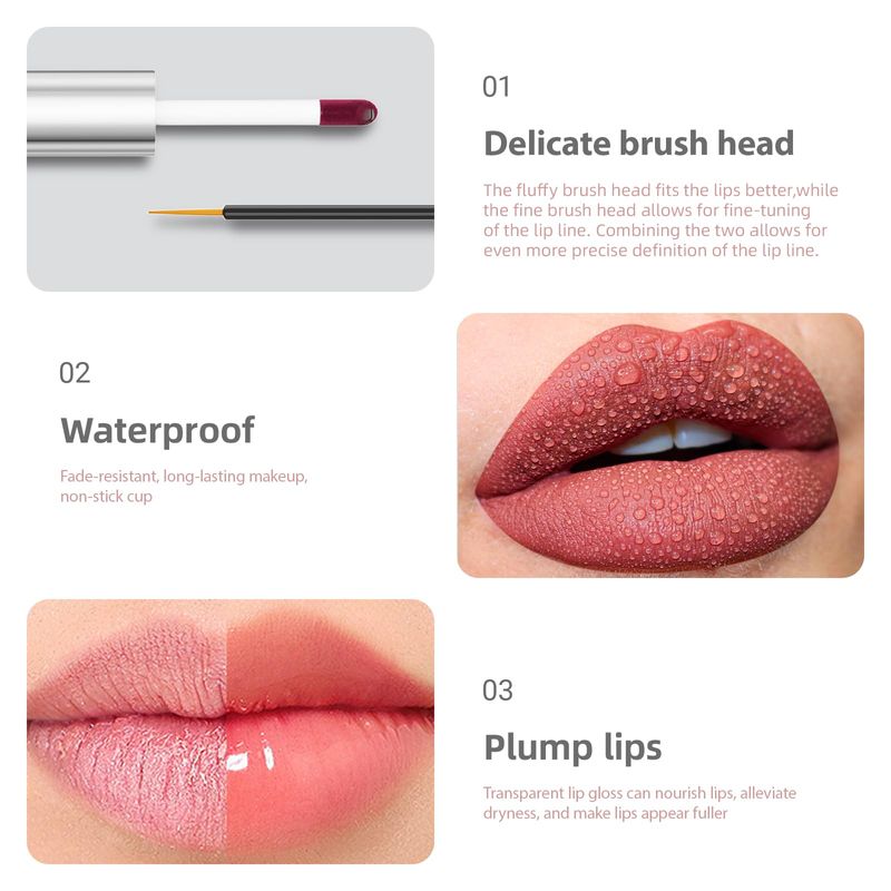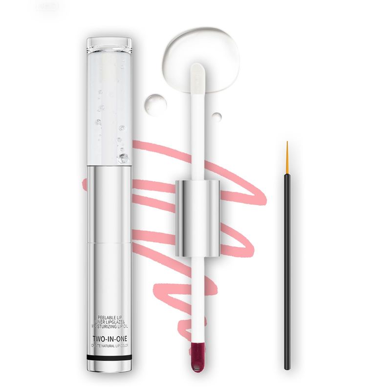 2 en 1 Peel Off Lip Stain Lip Gloss Oil Juego combinado de doble extremo, tinte labial de larga