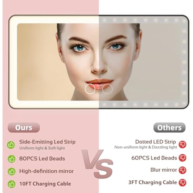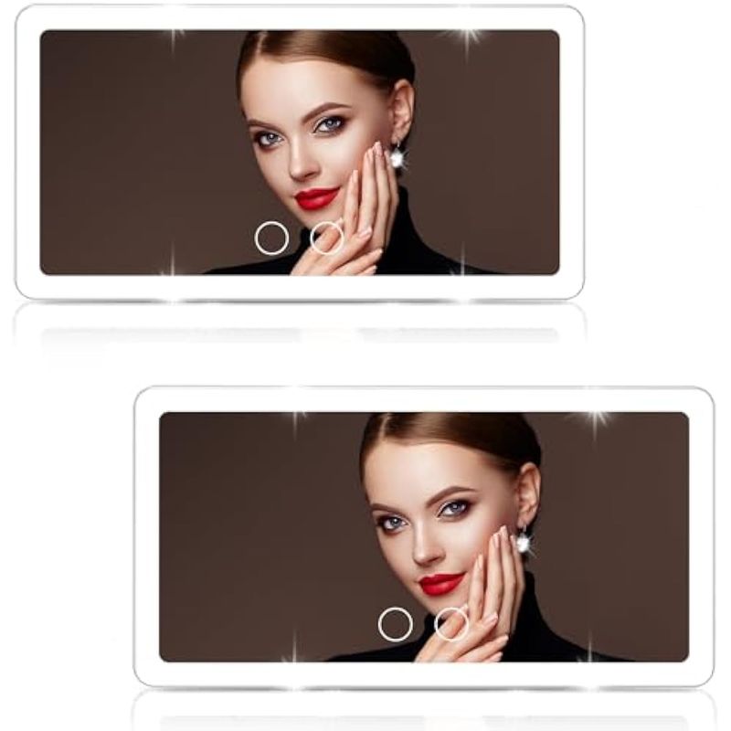 2 espejos de tocador para automóvil, espejo LED grande para automóvil con 3 modos de luz y 80 LED,
