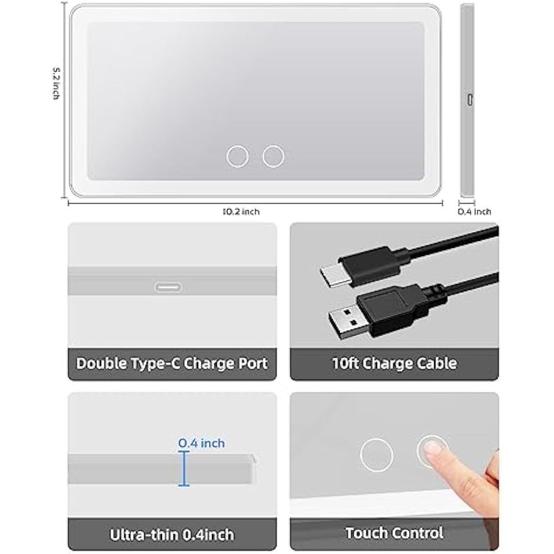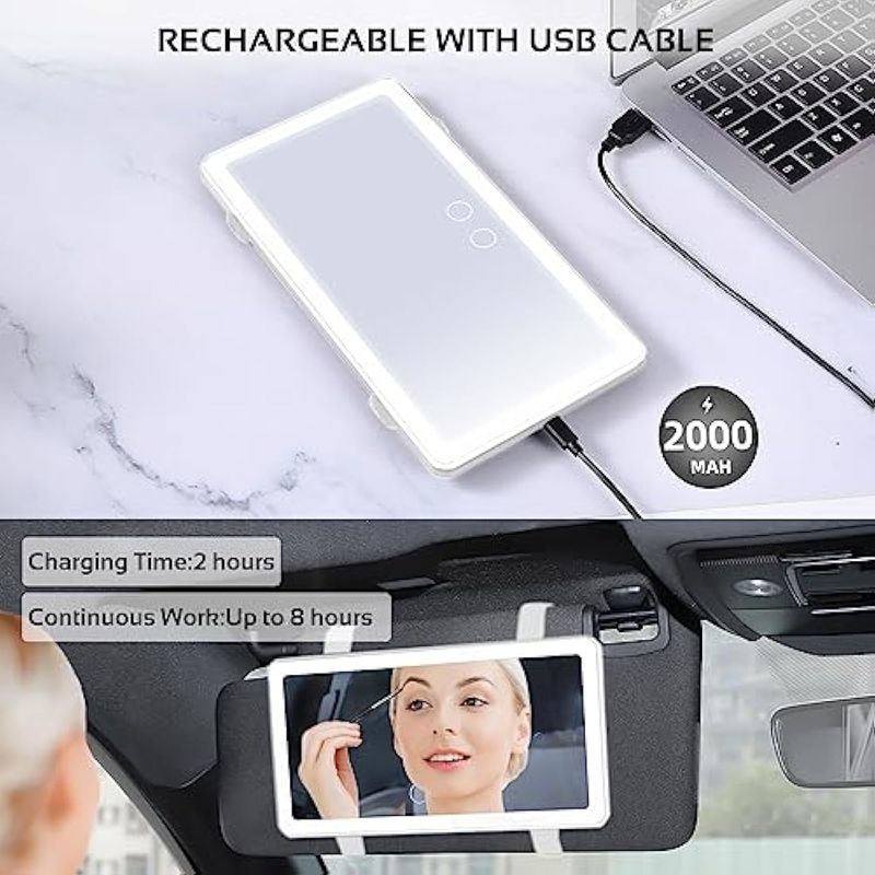 RODADOSHERRAMIENTAS PARA AUTO2 espejos de tocador para automóvil, espejo LED grande para automóvil con 3 modos de luz y 80 LED,
