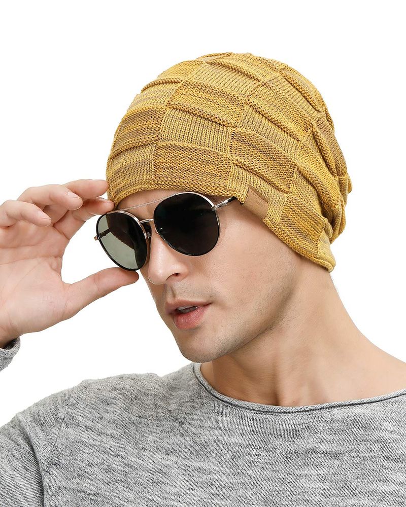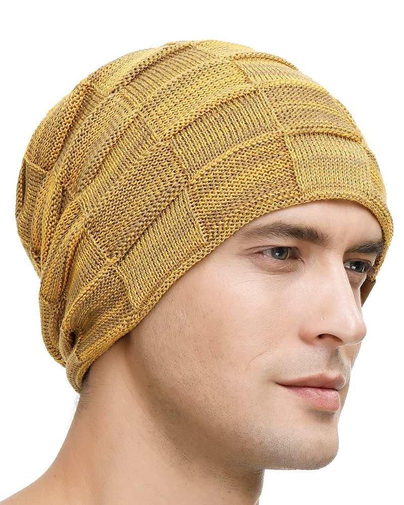 2 Packs Slouchy Beanie for Men Winter Hats for Guys Cool Beanies Mens Lined Knit Warm Thick Skully - Pardo