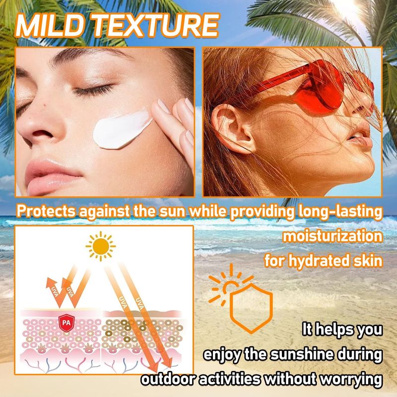 Hidratación de larga duración: el protector solar facial hidrata e hidrata tu piel, bloqueando la humedad cuando estás bajo el sol caliente, protegiéndote del sol mientras hidrata tu piel de forma natural y suave. Te da una experiencia cómoda de protección solar.