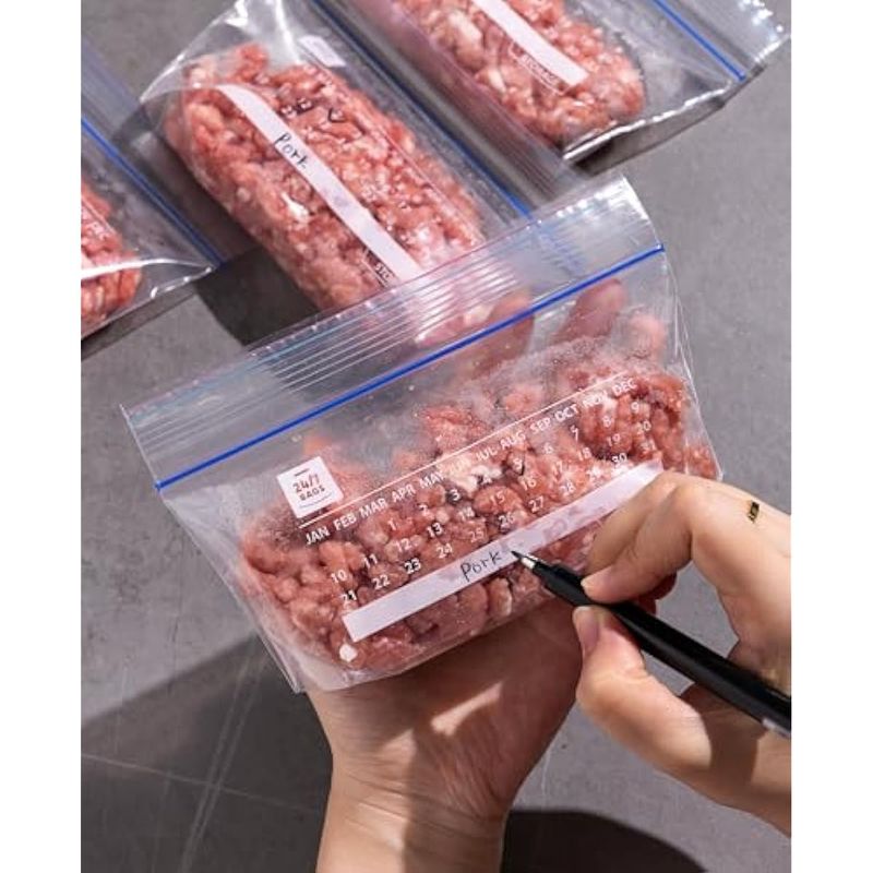 Característica del calendario: Todas nuestras bolsas para congelador vienen incluidas con una característica adicional de un calendario y una tira grabable que le permite registrar información detallada. Con la nueva función de calendario, ahora puede marcar el mes y el día en que empacó su artículo, lo que le facilita realizar un seguimiento y garantizar la seguridad de su salud.