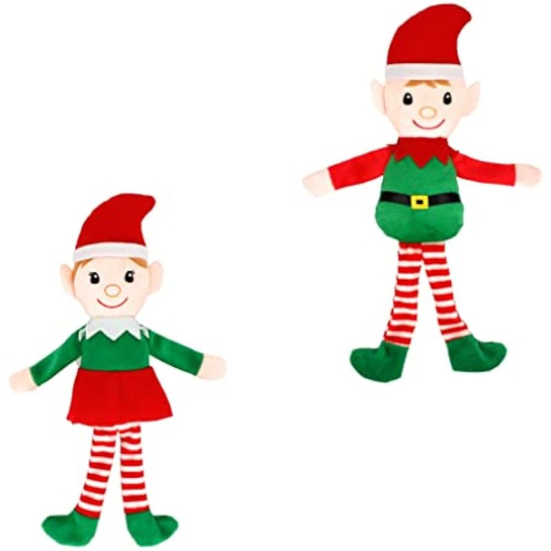 2C ELFOS DE PELUCHE DE CASA DE NAVIDAD, TONO DE PIEL JUSTO, 14.5 X 4 PULGADAS. ESTOS ELFOS SE PUEDEN PERSONALIZAR CON SUS PROPIAS PERSONALIDADES. (1) NIñO (1) NIñA