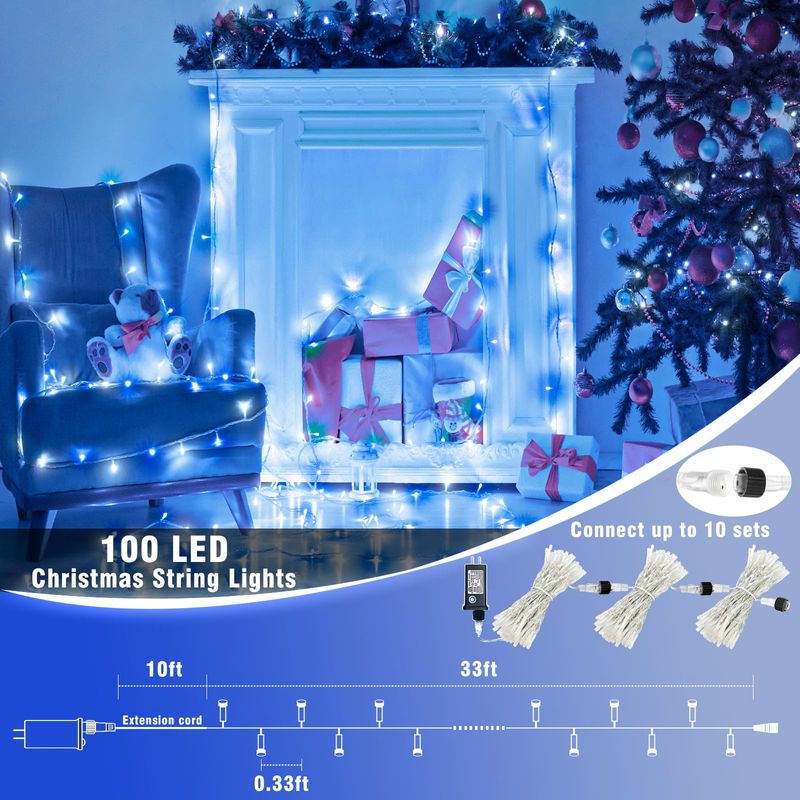 300 luces LED de Navidad para exteriores, tira de luces de Navidad extra larga de 99 pies, 8 modos
