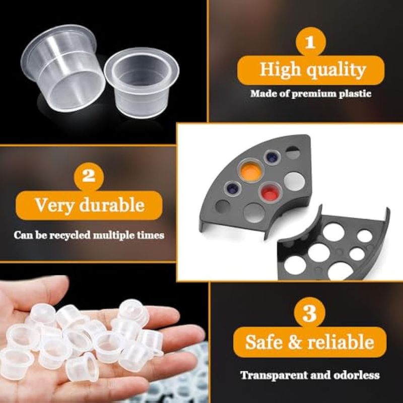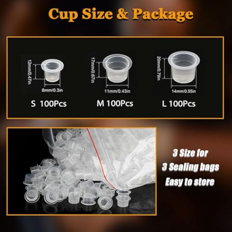 300 tapas de tinta de tatuaje con 2 soportes para tazas de tinta de tatuaje, tapas de tatuaje de