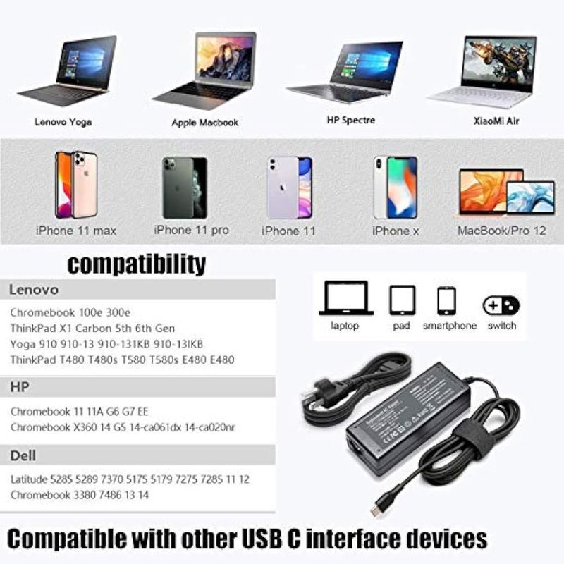45W USB C Chromebook Charger for HP Chromebook X360 14-ca051wm 14-ca052wm 14-ca091wm 14-ca061dx