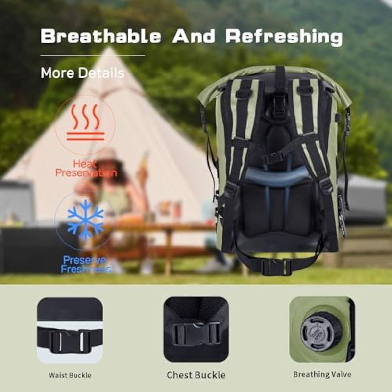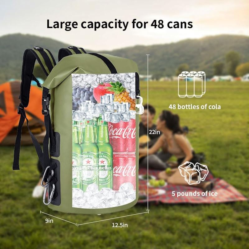 48CANS LARGE COOLER BACKPACK INSULATED WATERPROOF FOR MEN WOMEN INSULATED BACKPACK COOLER LEAK PROOF WATERPROOF FOR 24 HOURS COOLING FOR CAMPING PICNIC HIKING BEACH TRAVEL KAYAKING