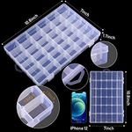 Caja organizadora de almacenamiento de joyas de plástico con divisor: diseñada con varias rejillas que están separadas por divisores, el divisor se puede dividir en 2 mitades, lo que te permite quitarlo para almacenar los artículos grandes, con alta transparencia, puedes comprobar fácilmente el contenido dentro de la caja sin abrirlo y mantener los artículos organizados