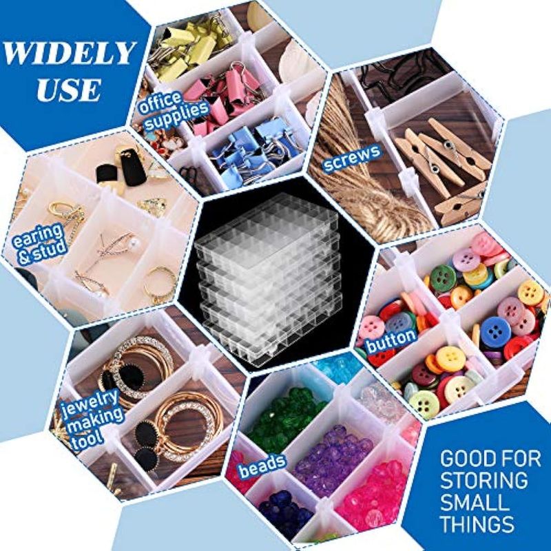 Objetos aplicables: muy adecuado para almacenar la mayoría de objetos pequeños, como joyas, aretes, anillos, collares, tobilleras, pulseras, hilos, cuentas, accesorios de diamantes de imitación, herramientas de pintura de diamante, ganchos de pesca, aparejos de pesca, piezas electrónicas, manualidades, clavos, tuercas, pernos, etc