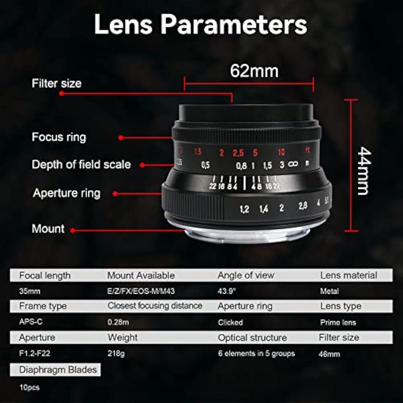 TV Y VIDEOCÁMARAS7artisans Lente de enfoque manual de gran apertura F1.2 Mark II APS-C Clicked Prime Lens para Canon