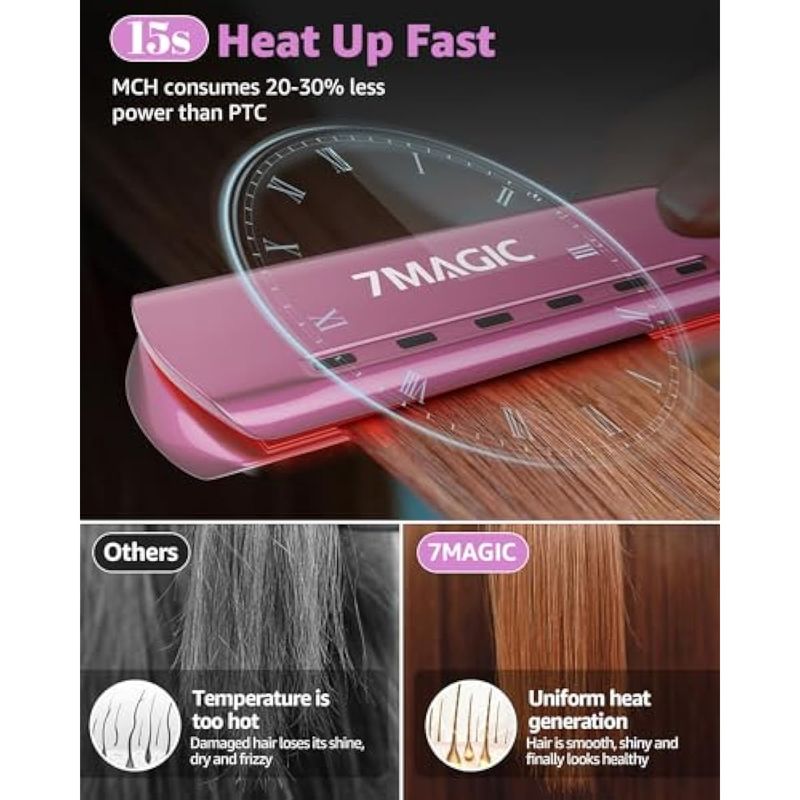 7MAGIC PLANCHA DE PELO NANO TITANIUM DE 1.7 PULGADAS DE ANCHO PARA TODO TIPO DE CABELLO, PLANCHA PLANA CON 5 TEMPERATURAS, PLANCHA DE PELO CON DOBLE VOLTAJE, PLANCHA ALISADORA PARA ALISAR RáPIDO,