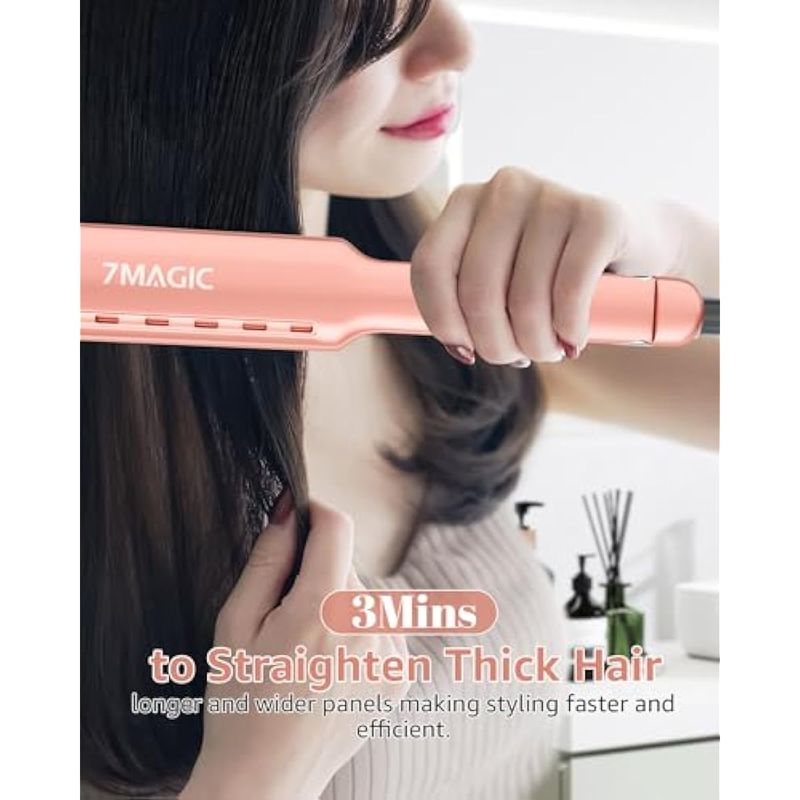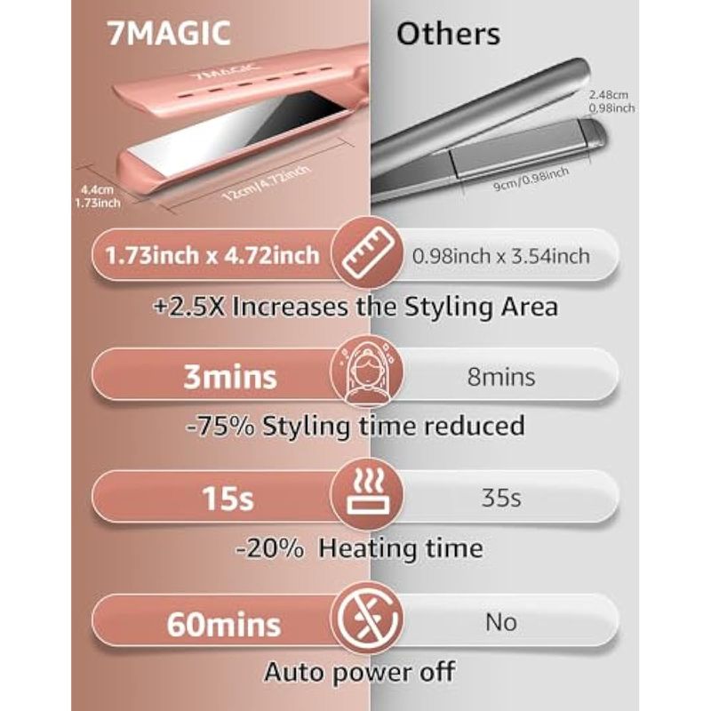 7MAGIC PLANCHA PLANA NANO TITANIUM DE 1.7 PULGADAS DE ANCHO PARA TODO EL CABELLO, PLANCHA PLANA CON 5 TEMPERATURAS Y DOBLE VOLTAJE, ALISADOR DE CABELLO PARA CABELLO HúMEDO Y SECO, PLANCHA DE PELO