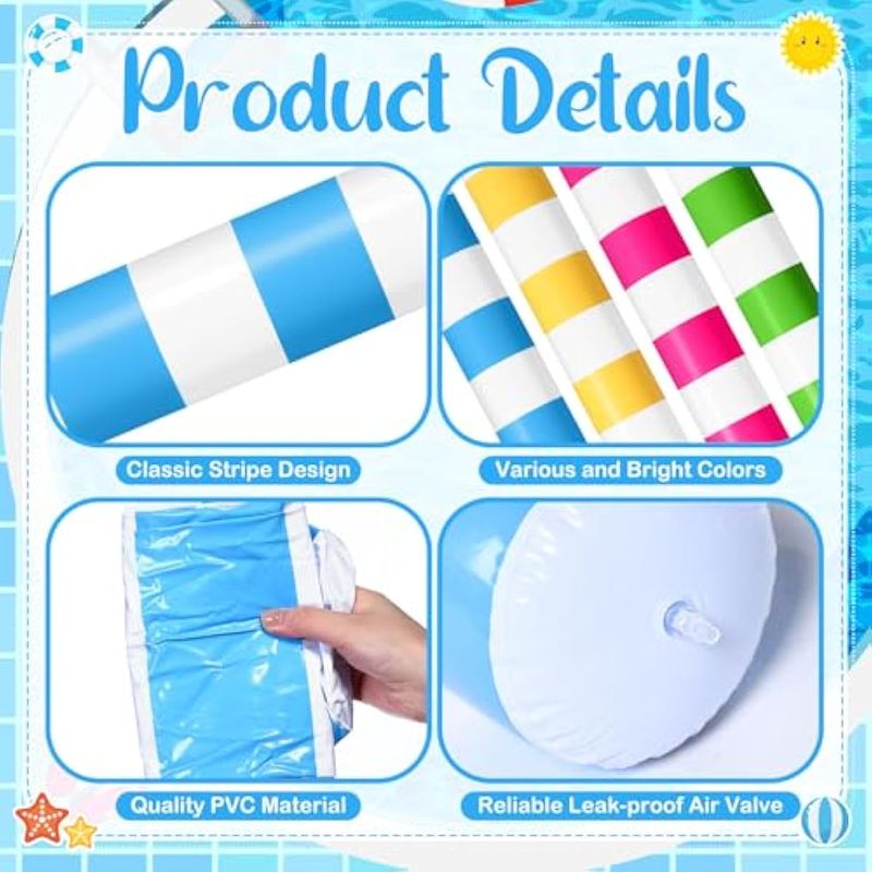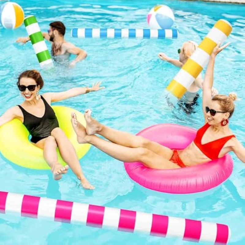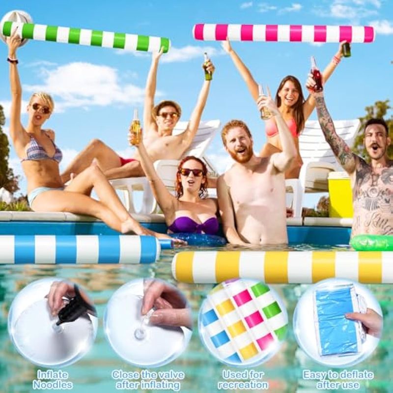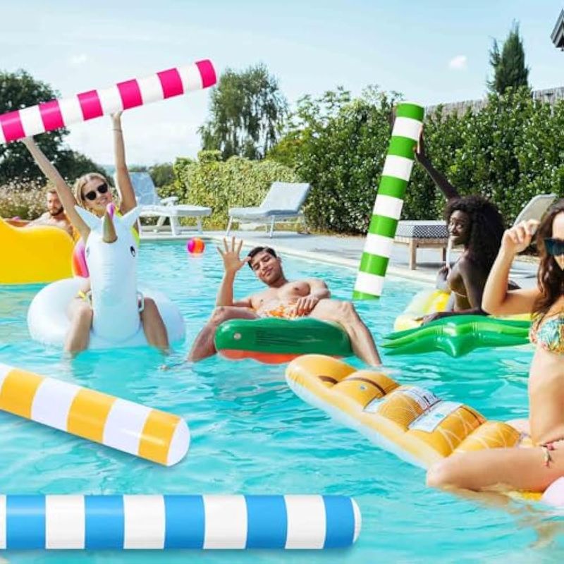 Amplio uso: experimenta la emoción acuática como nunca antes con nuestros palos de piscina inflables; desde piscinas hasta playas, lagos y parques acuáticos, son tu accesorio ideal para el verano; no solo se limitan a piscinas; elevan el factor de disfrute en cualquier reunión de verano o fiestas de cumpleaños
