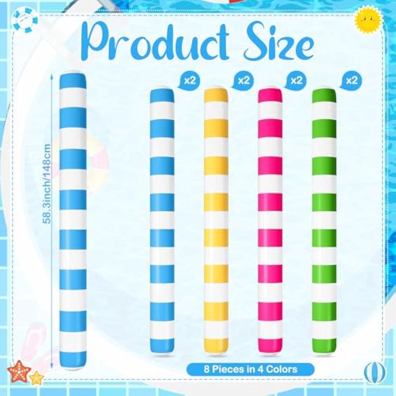 8 PALOS INFLABLES DE PISCINA DE 58.3 PULGADAS, PALOS DE PISCINA COLORIDOS DE PVC AL AIRE LIBRE, FLOTADORES DE AGUA, PALOS PARA ADULTOS, PISCINAS DE VERANO, PLAYA, FIESTA EN EL LAGO, 4