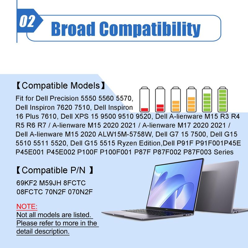 86Wh 69KF2 - Batería de repuesto para laptop Dell XPS 15 9500 9510 9520 Alienware M15 M17 R3 R4 R5