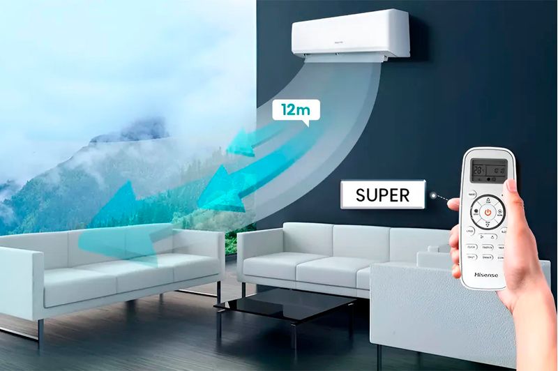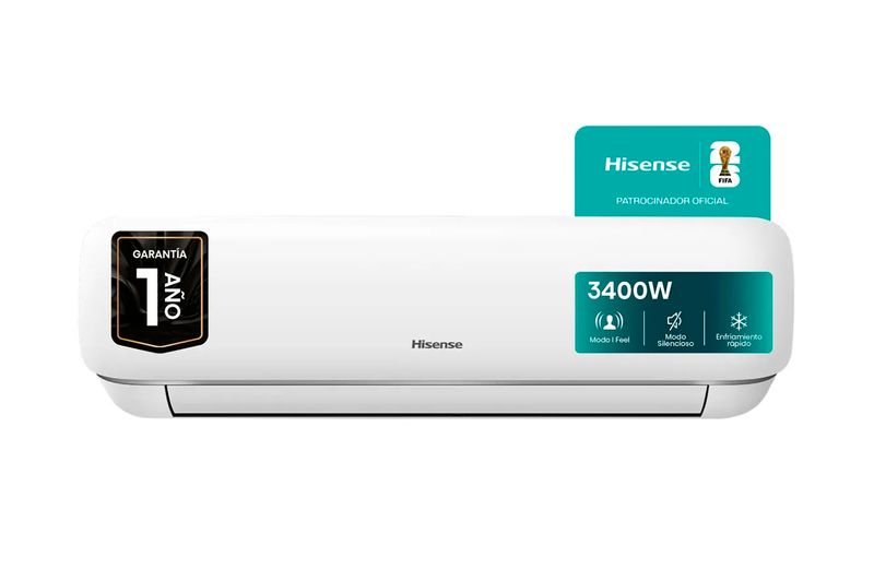 - Marca: Hisense - Modelo: AS12HR4SVRKG03PX4 - EAN: 7796962992066 - Alimentación: 220-240 VCA 50 Hz - Eficiencia Energética Clase A - Frigorías: 2924 - Capacidad frío: 3400 W - Consumo eléctrico frío: 1040 W - Capacidad calor: 3100 W - Consumo eléctrico calor: 910 W - Ef. Energética (Frío) -E.E.R.: 3.27 -Clase A - Ef. Energética (Calor) -C.O.P.: 3.41 - Nivel de ruido máximo (int): 39 dB - Cañeria de intercon. (Liq./Gas) 1/4" 1/2" - Hidden Display - Refrigerante Ecológico R410a - Control Remoto Multifunción - Modo Deshumidificación - Función Sleep - Timer Programable - Dimmer - Barrido de Aire Automático - Súper Silencioso - Filtros Lavables - Medidas Unidad Interior (An x Al x Prof.): 890 x 260 x 203 mm - Peso Unidad Interior: 8 Kg - Medidas Unidad Exterior (An x Al x Prof.): 715 x 482 x 240 mm - Peso Unidad Exterior: 26 Kg Las imágenes son a modo ilustrativo.