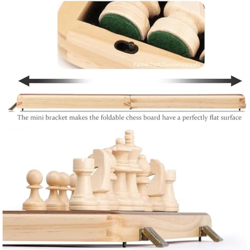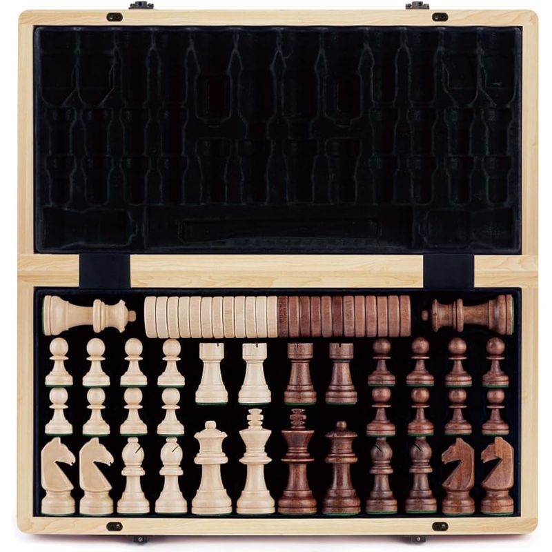 A&A JUEGO DE AJEDREZ MAGNéTICO DE MADERA PLEGABLE DE 15 PULGADAS CON PIEZAS DE AJEDREZ STAUNTON DE ALTURA KING DE 3 PULGADAS, CAJA DE PINO CON INCRUSTACIONES DE CAOBA Y ARCE