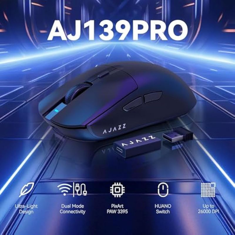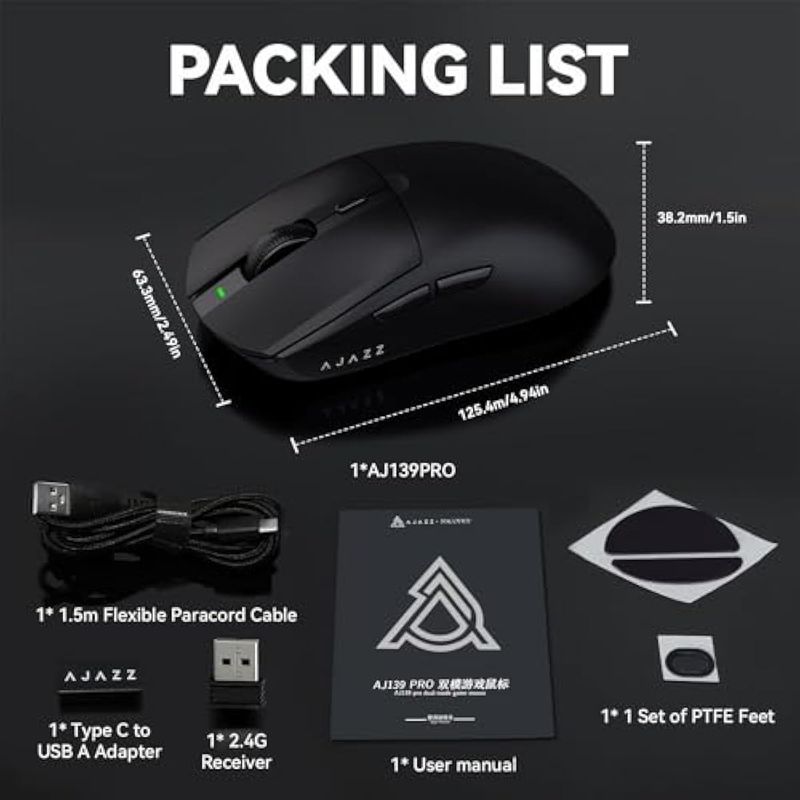 A.JAZZ AJ139 G Pro 4K Ratón inalámbrico para juegos ultraligero con doble modo tipo C con
