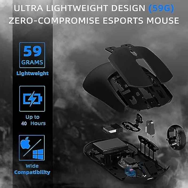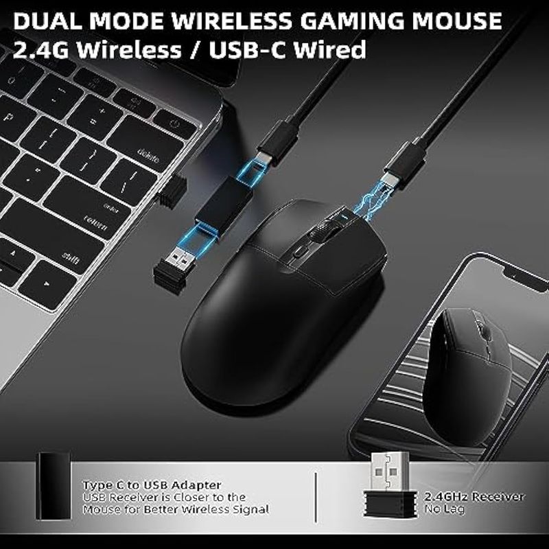 A.JAZZ AJ139 G Pro Ratón inalámbrico para juegos ultraligero 2.08 oz con doble modo tipo C con