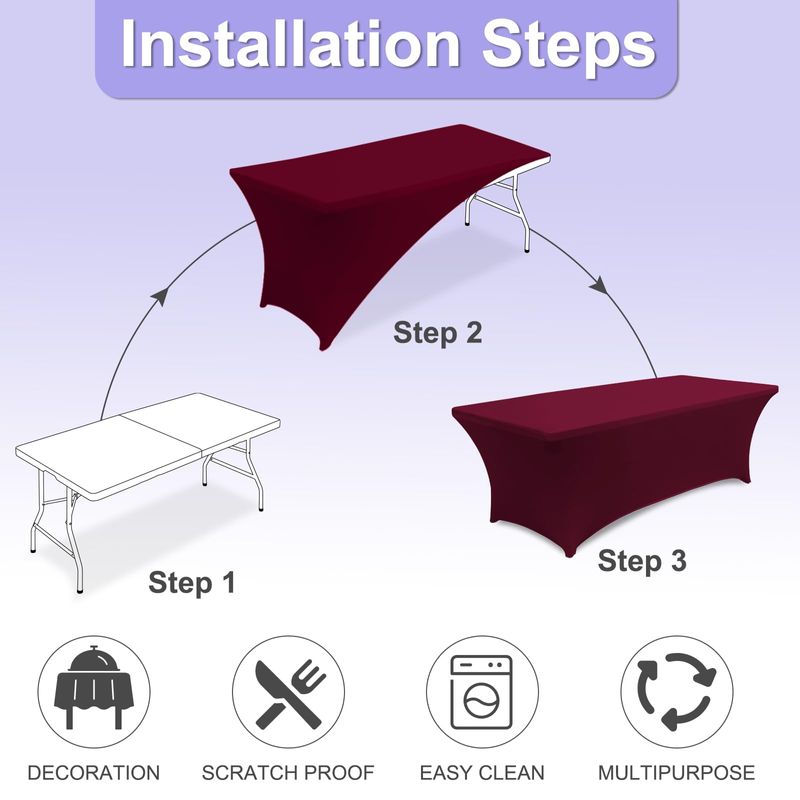 HOGARBAZARUTENSILIOS DE COCINAABCCANOPY Paquete de 2 manteles de elastano de 6 pies, rectangulares, ajustables de poliéster,