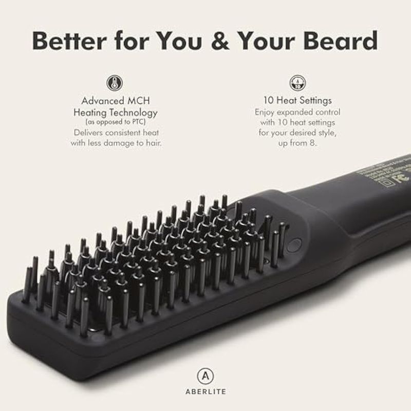 ABERLITE PRO (ACTUALIZADO) - PLANCHA PROFESIONAL DE BARBA NEGRA - DIENTE DE PEINE ANTIQUEMADURAS - ACONDICIONAMIENTO IóNICO - PARA TODO TIPO DE BARBA