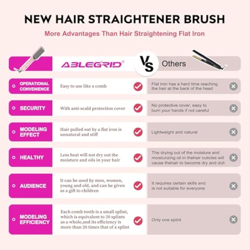 ABLEGRID Cepillo alisador de cabello, peine alisador de cabello para mujeres, varita portátil con 5