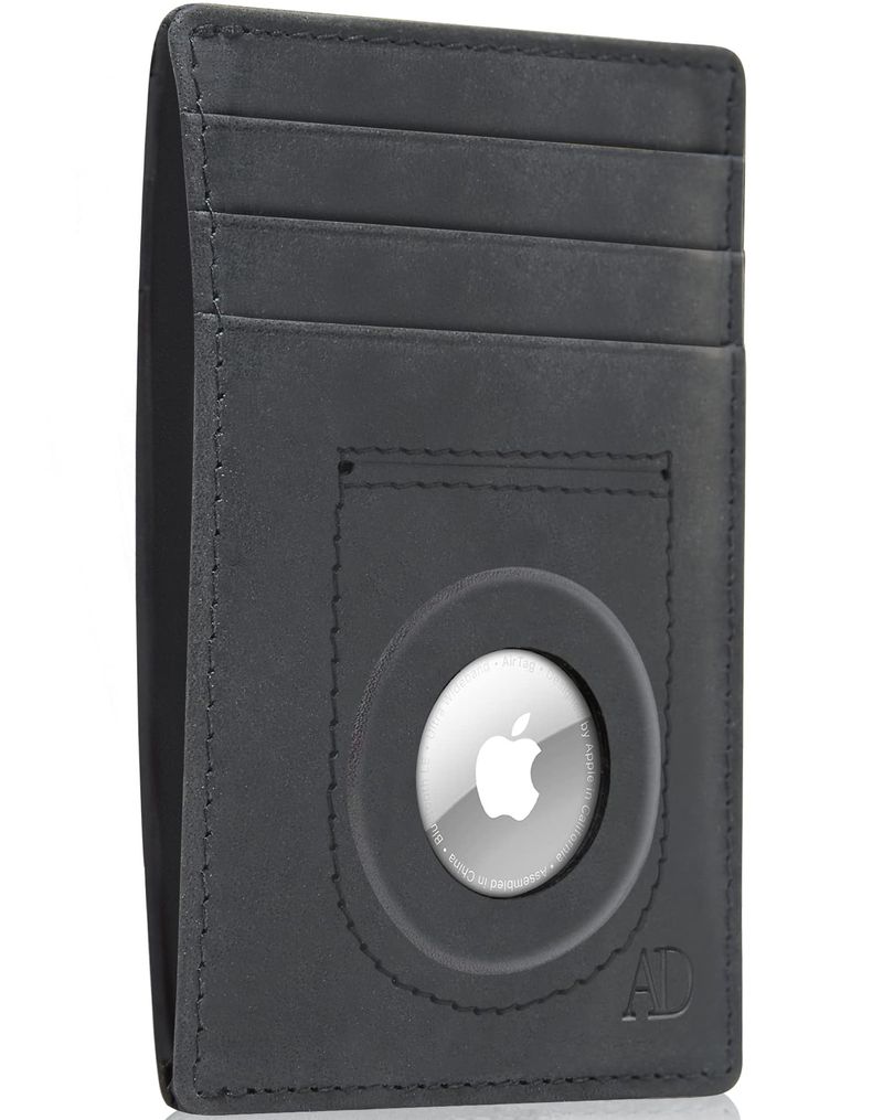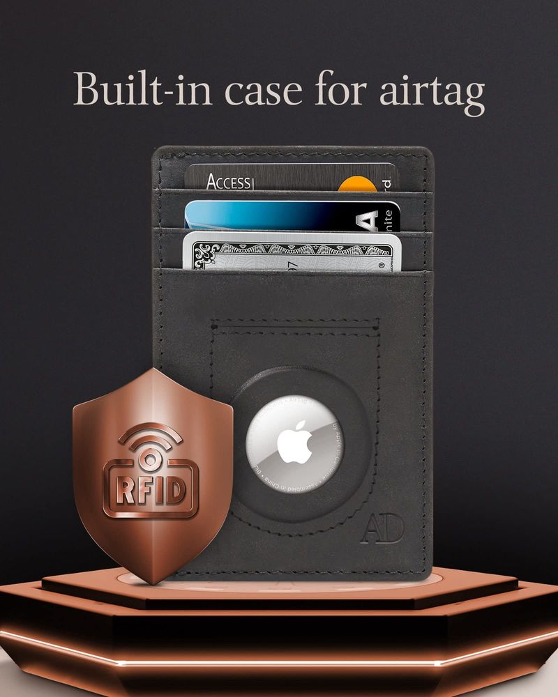 ACCESS DENIED AIRTAG HOLDER SLIM WALLET CUERO GENUINO RFID BLOQUEO REGALOS PARA HOMBRES, CRAZYHORSE CAFé, MINIMALISTA