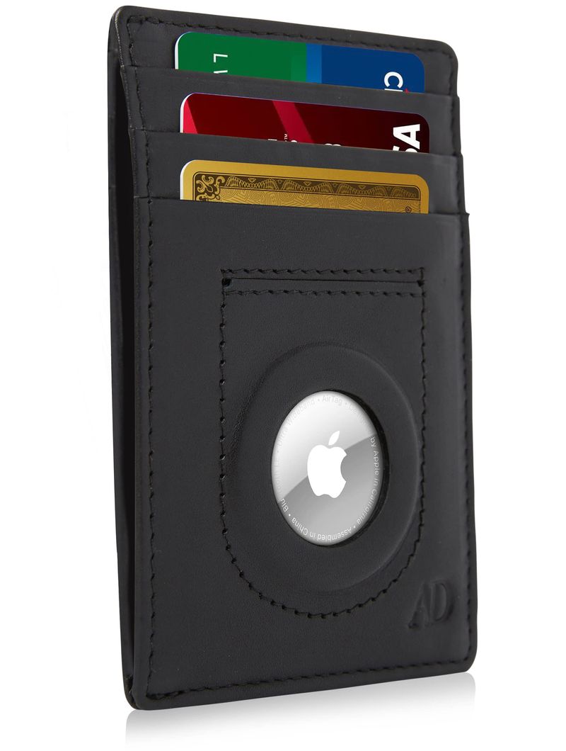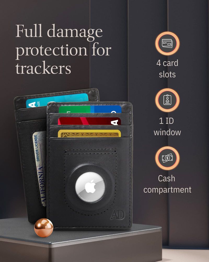 Access Denied AirTag Holder Slim Wallet Cuero Genuino RFID Bloqueo Regalos Para Hombres, Crazyhorse