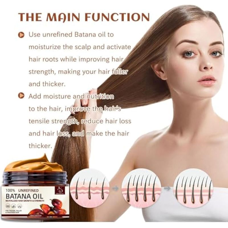 TRATAMIENTO INTENSIVO: Desbloquea el secreto del cabello delicioso y radiante con la incorporación de Batana Oil en tu rutina de acondicionamiento profundo. Caliente una pequeña cantidad, masajee el cuero cabelludo y el cabello, y deje que el aceite haga su magia. Enjuague después de 20 minutos para un tratamiento similar a un salón en casa, asegurando cerraduras de lujo.